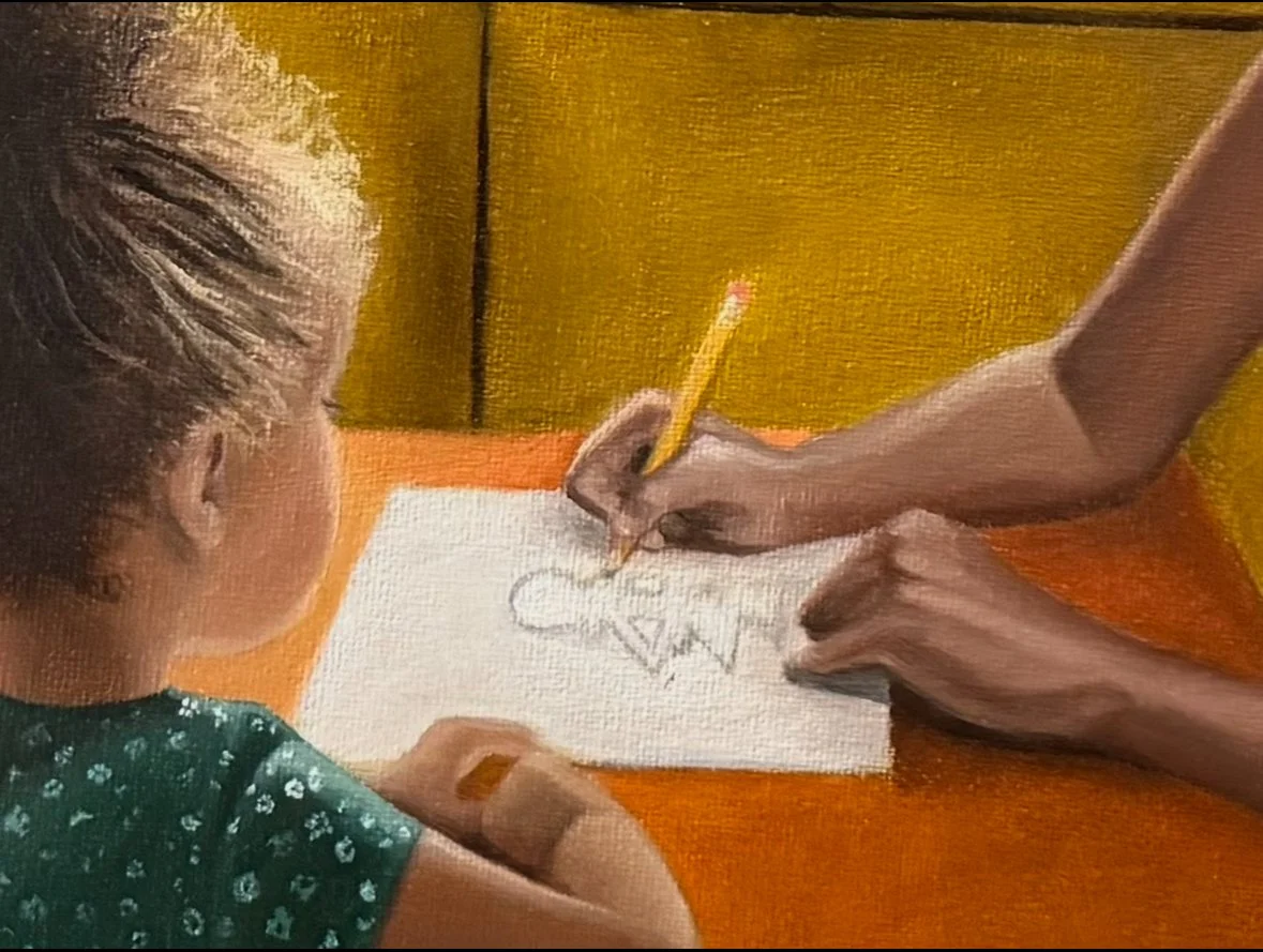 This artwork was created from such a special memory. When I was really little, I asked my mother to draw a lady for me, and as she was finishing, I noticed something was missing —- hands! So she added little fingers on the sides, and to me, it was a masterpiece just as she will always be. An homage to the memory of my beloved late mother.